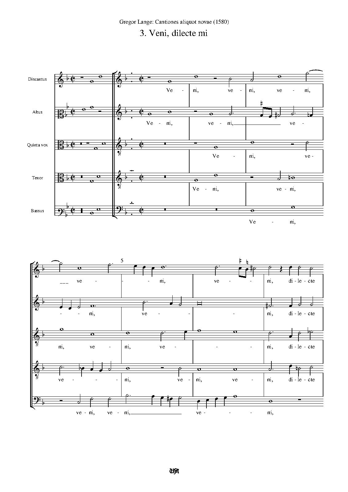 | First Publication | 1580 in Cantiones aliquot novae (No.3) |