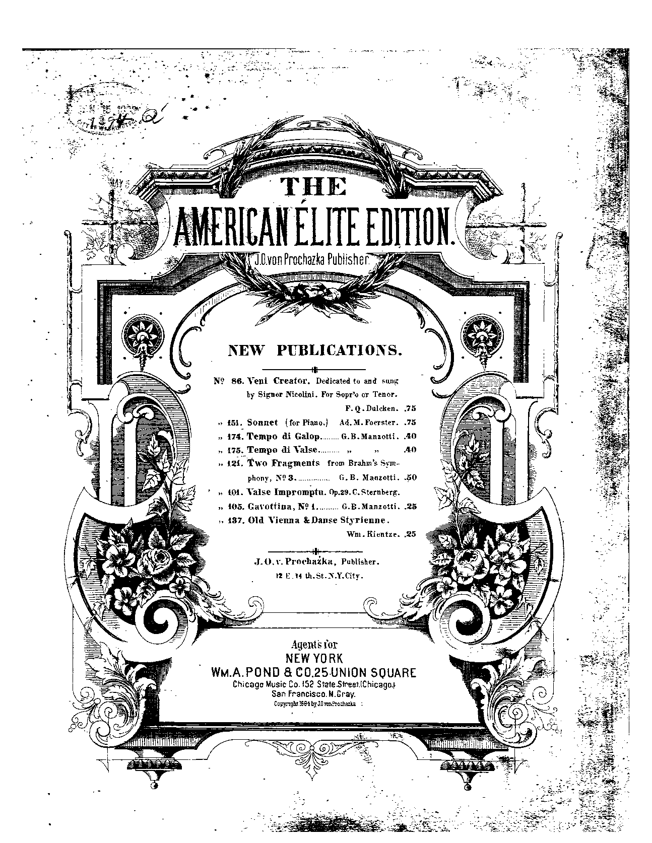 New York: J.O. v. Prochazka, 1884. American Élite Edition No.46.