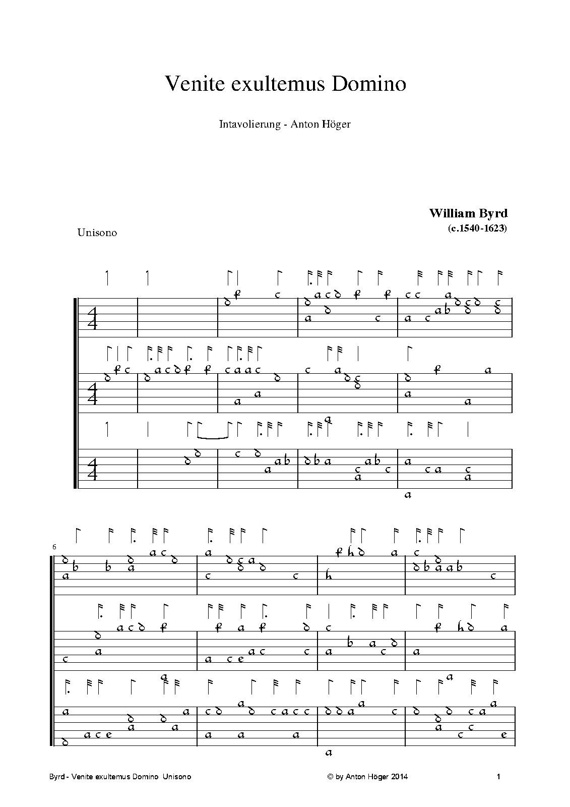 Misc. Notes Intabulation in french Lute-tabulature (Unisono) with diminutions in the tradition of the great luteplayers of the 16th century. If performed I would look forward about a small reference to my efforts.