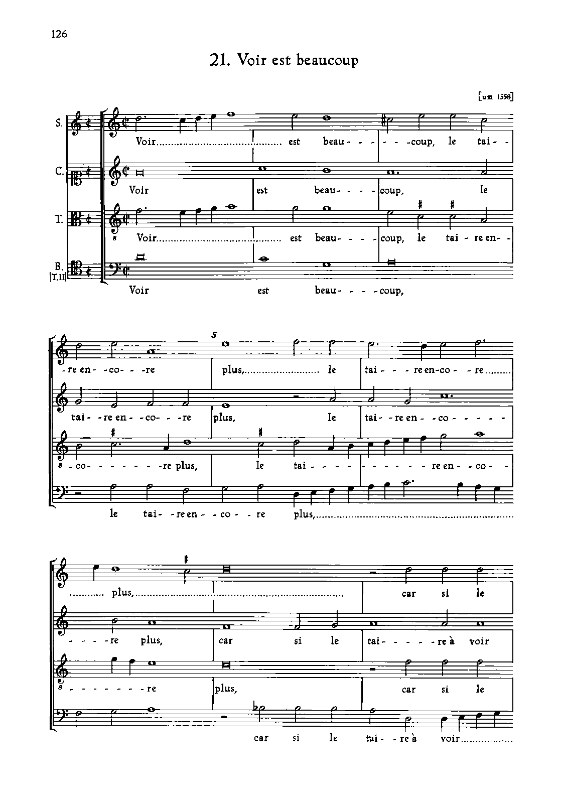 Publisher. Info. Sämtliche Werke, neue Reihe, Band 1. Lateinische Motetten, französische Chansons und italienische Madrigale (pp.XXXVIII-XXXIX, 126-28)