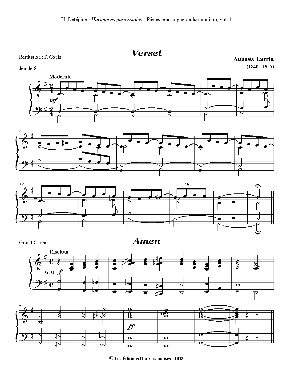 From Harmonies paroissiales - Pièces pour orgue ou harmonium choisies par l'Abbé Henri Delépine (1871-1956) - Vol. I.
