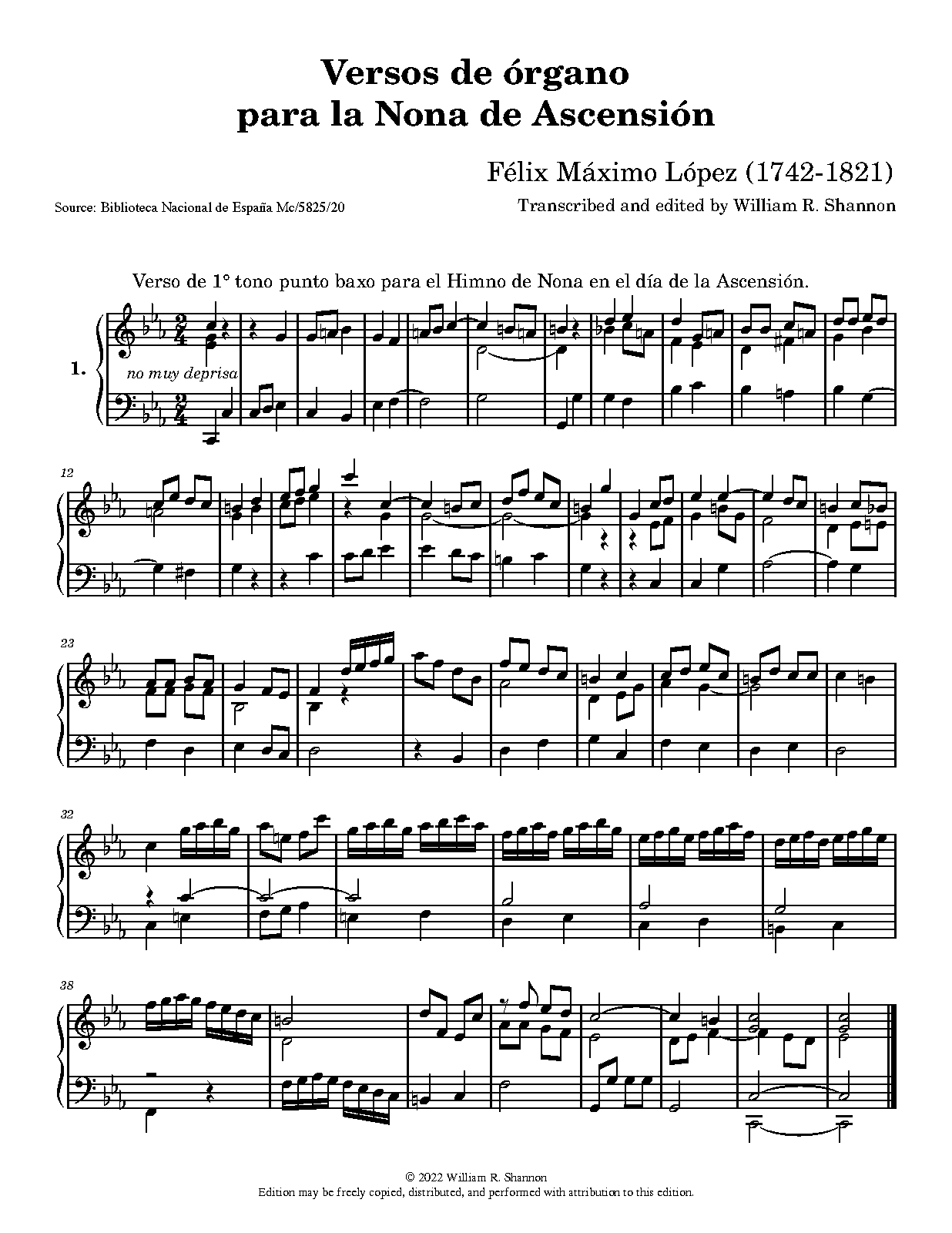 | Work Title | Versos de órgano para la Nona de Ascensión |