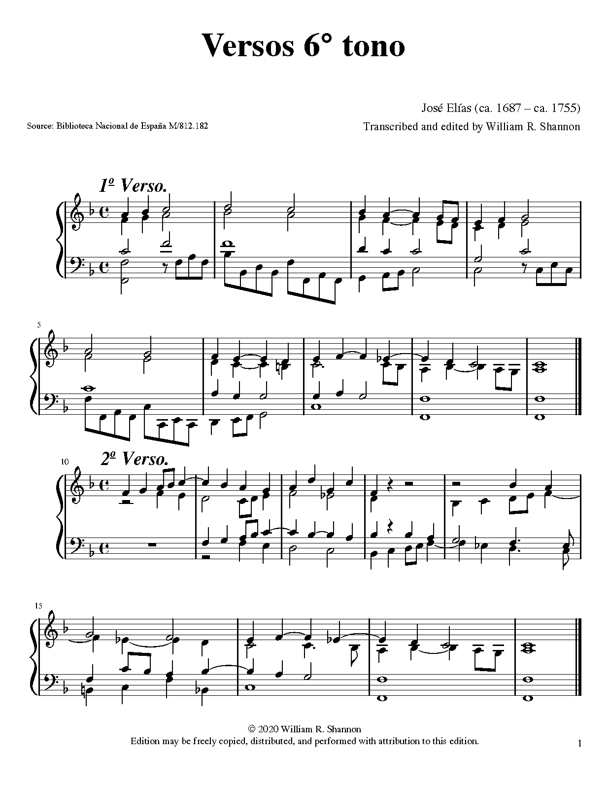 | First Publication. | Early 1700s in M/812 [Musicha de órgano del Sr. Joseph Elías mi maestro] |