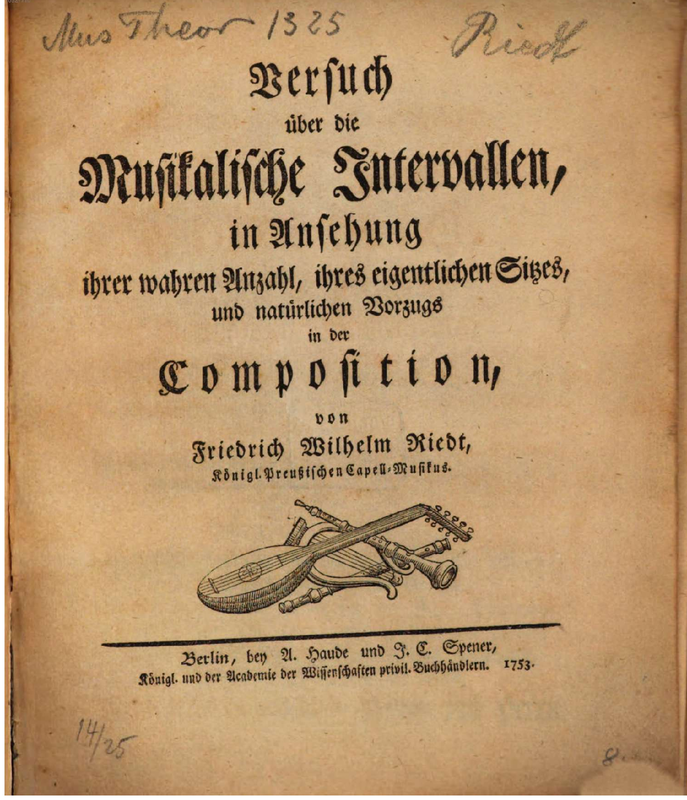 | Alternative. Title | Versuch über die Musikalische Intervallen, in Ansehung ihrer wahren Anzahl, ihres eigentlichen Sitzes, und natürlichen Vorzugs in der Composition |