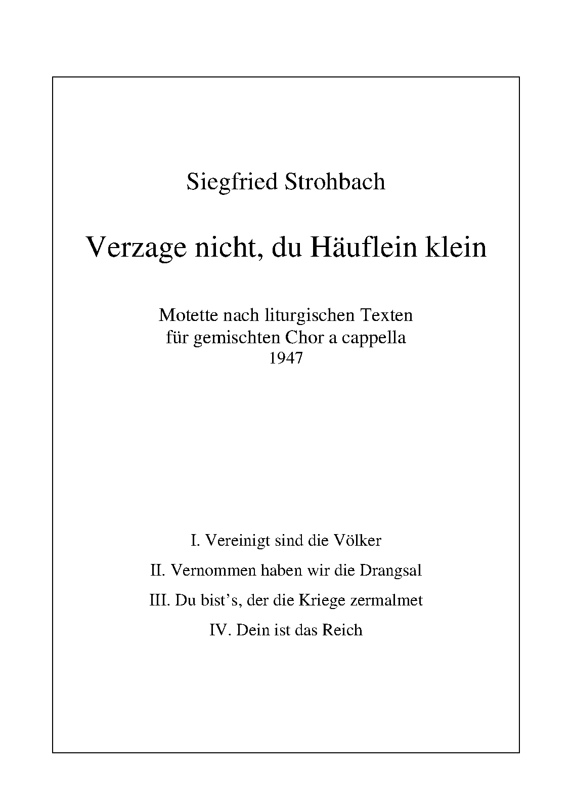| Text Incipit | 1. Vereinigt sind die Völker 2. Vernommen haben wir die Drangsal 3. Du bist's, der die Kriege zermalmet 4. Dein ist das Reich |