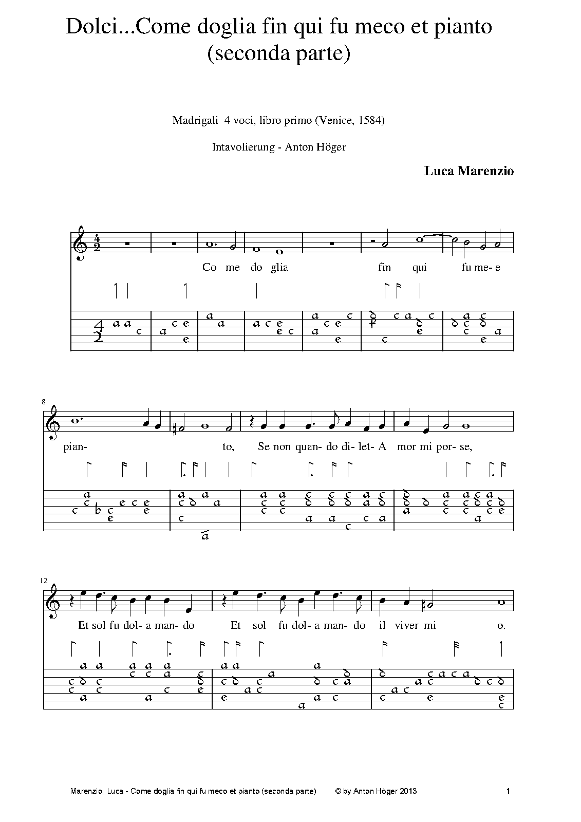 | First Publication | 1584 in Madrigals for 4 Voices |