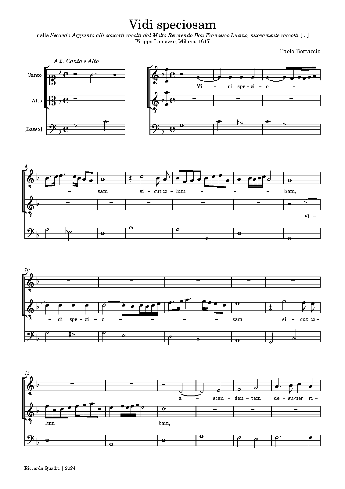 | First Publication | 1617 in "Partitura della Seconda Aggiunta alli concerti racolti dal Molto Reverendo Don Francesco Lucino nuovamente racolti da Filippo Lomazzo" |