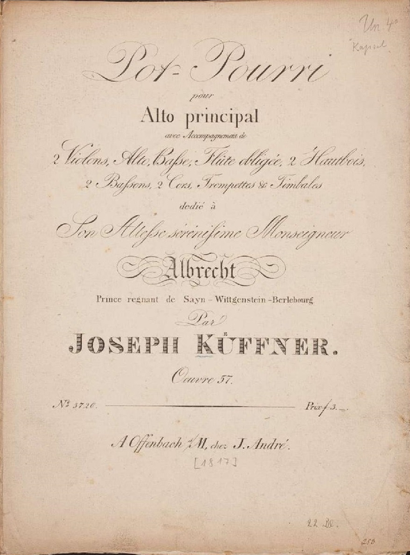 Pot-Pourri pour Alto principal avec Accompagnement de 2 Violons, Alto, Basse, Flûte obligée, 2 Hautbois, 2 Bassons, 2 Cors, Trompettes & Timbales
