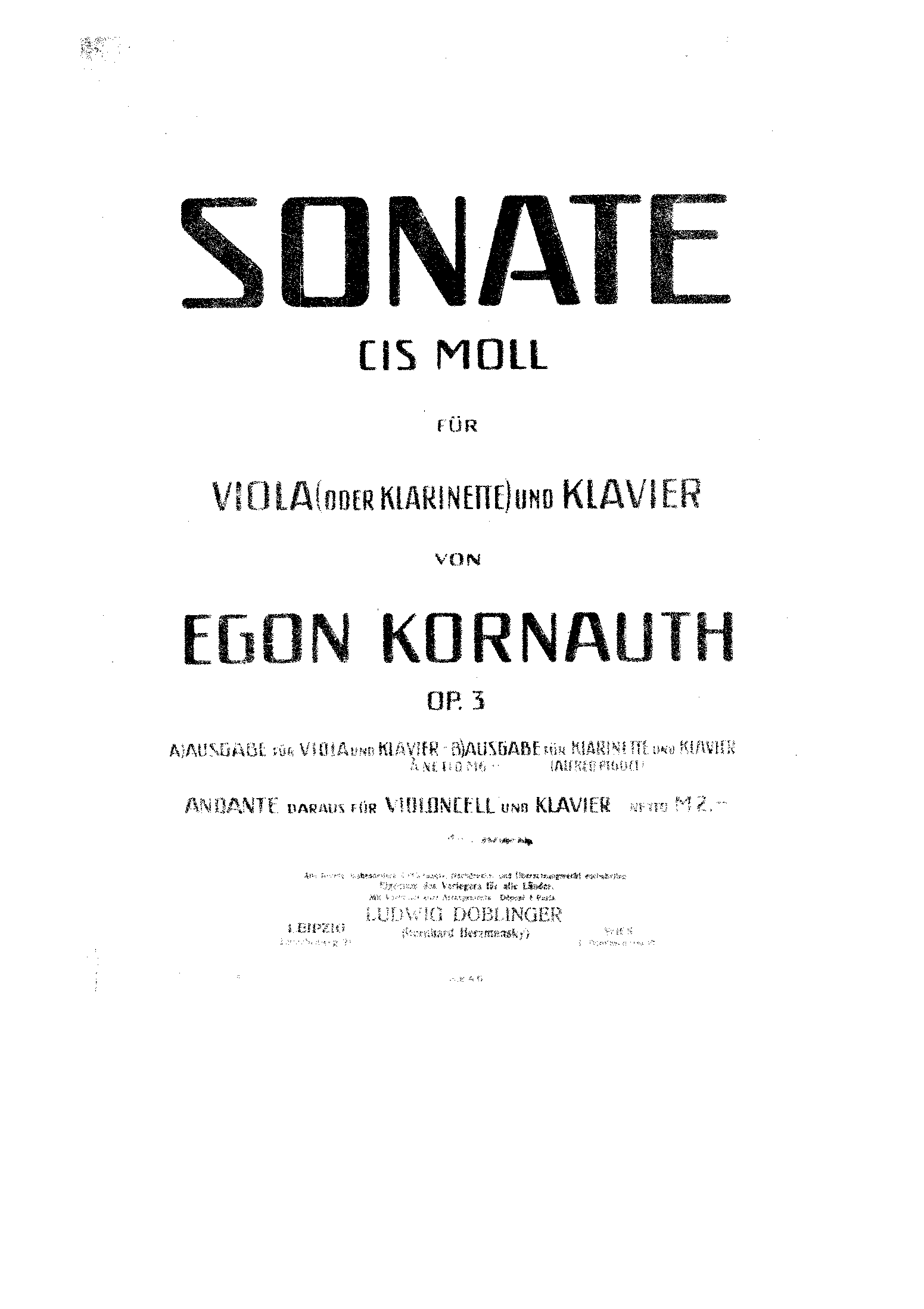 Sonate, Cis moll, für Viola (oder Klarinette) und Klavier