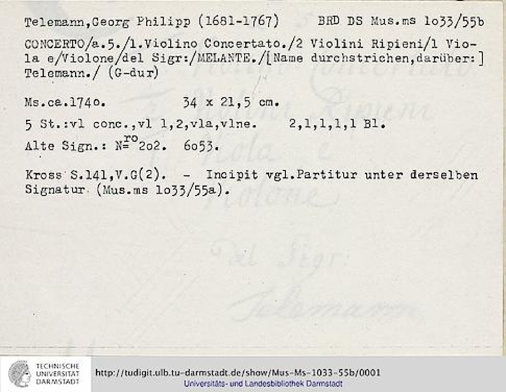 | Opus/Catalogue NumberOp./Cat. No. | TWV 51:G5 |