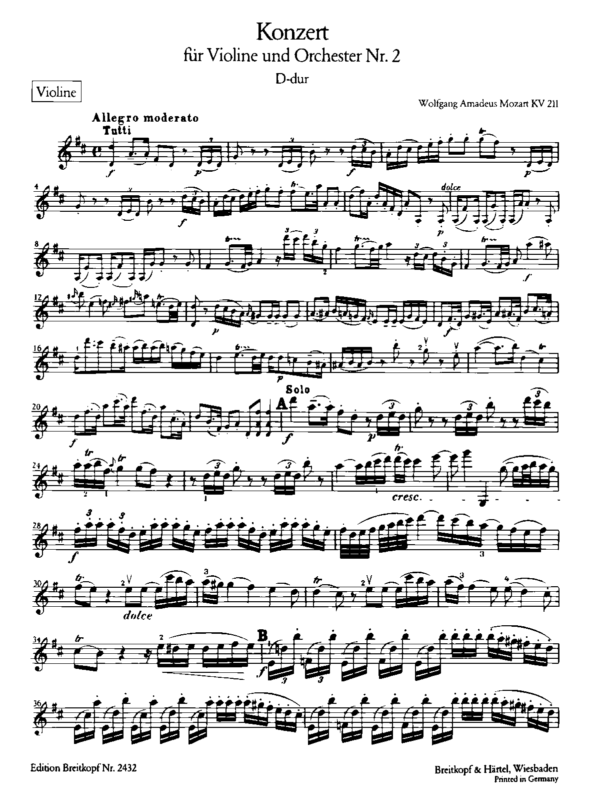 Violin Concerto No.2 in D major, K.211 (Mozart, Wolfgang Amadeus)