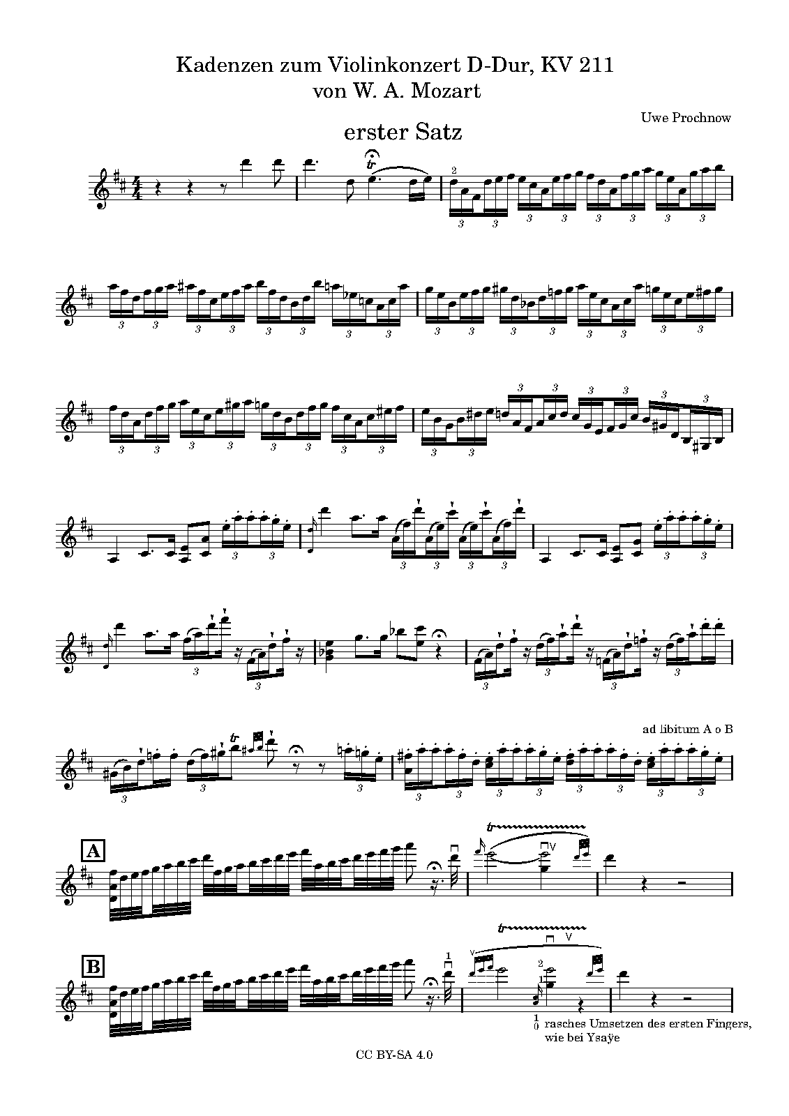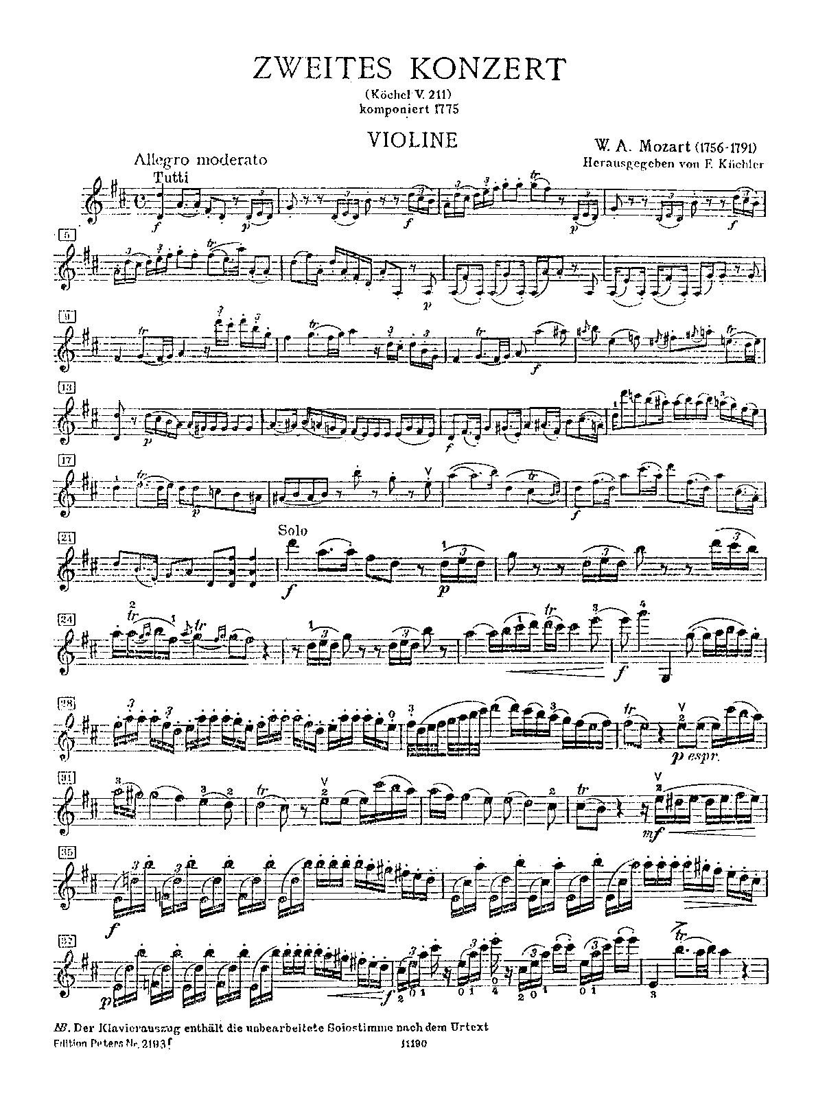 Name Aliases Violin Concerto No. 2 in D Major, K. 211; K. 211