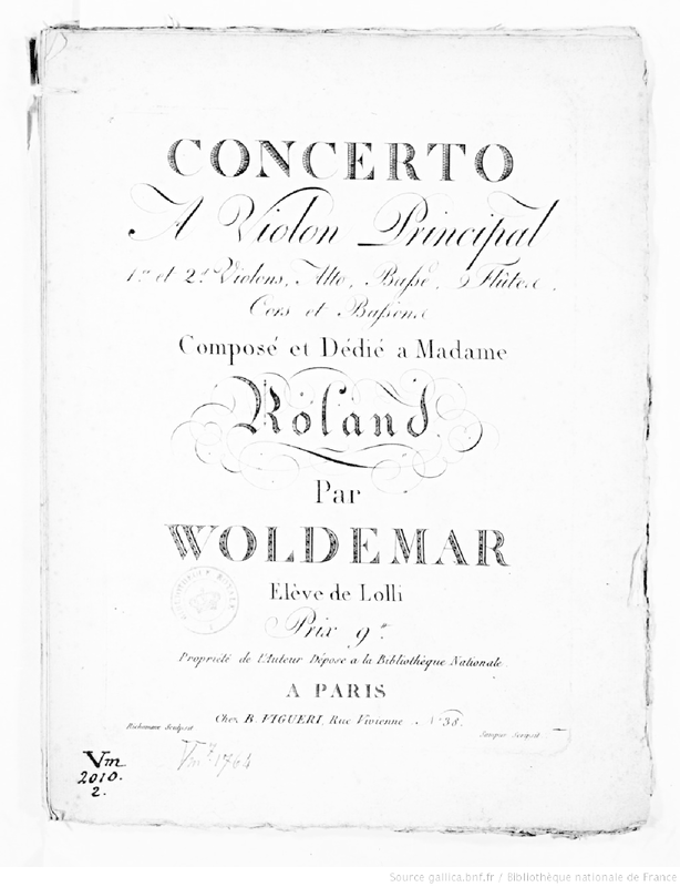 | Alternative. Title | Concerto a Violon Principal, 1ere et 2d violons, alto et basse, flutes, cors et bassons |