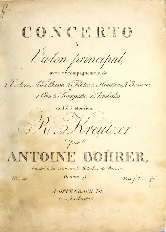 Thanks for turning this scan up, looks like an interesting concerto - striking form, also. - Schissel (his first concerto of 2 published by André, it seems, the 2nd, Op.12, published by them in 1811 and mentioned in AMZ in September of that year.) (To clarify, these are not his only two concertos for violin- an Op.50 was published by Breitkopf in 1835, for example. The brothers collaborated on a double concerto besides.