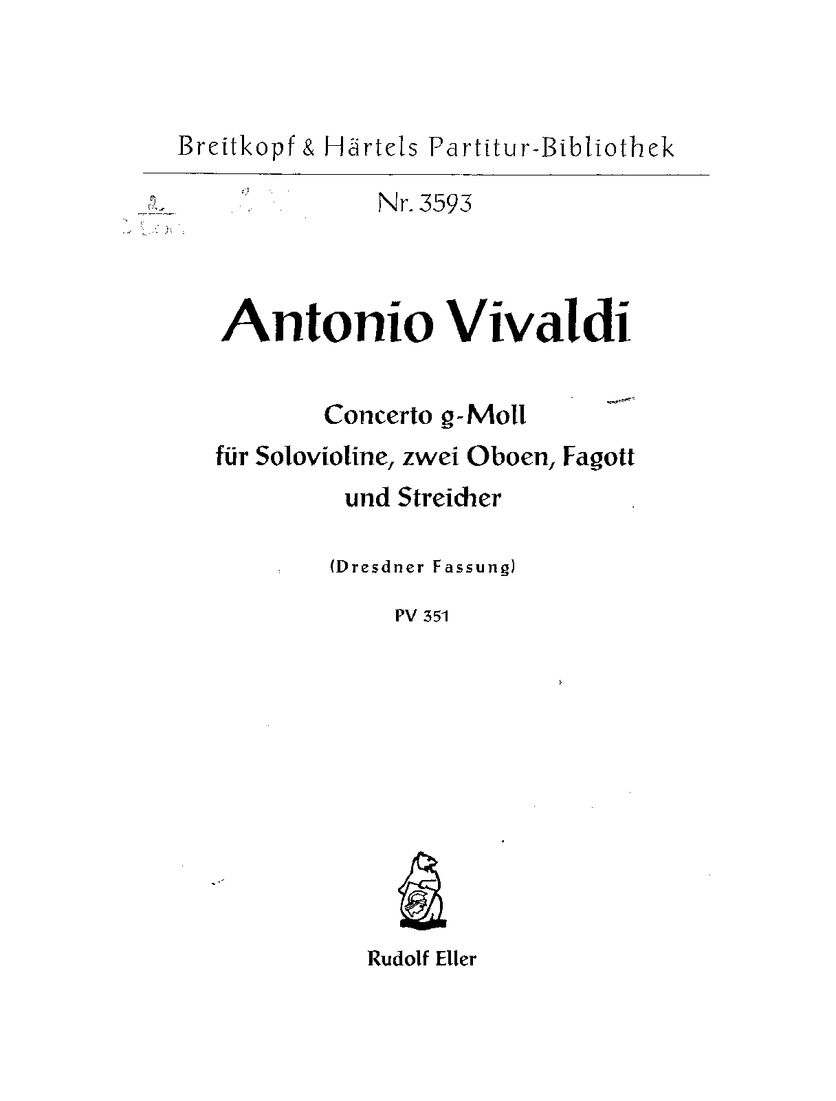 Publisher. Info. Le Opere di Antonio Vivaldi, Vol., Tomo 351