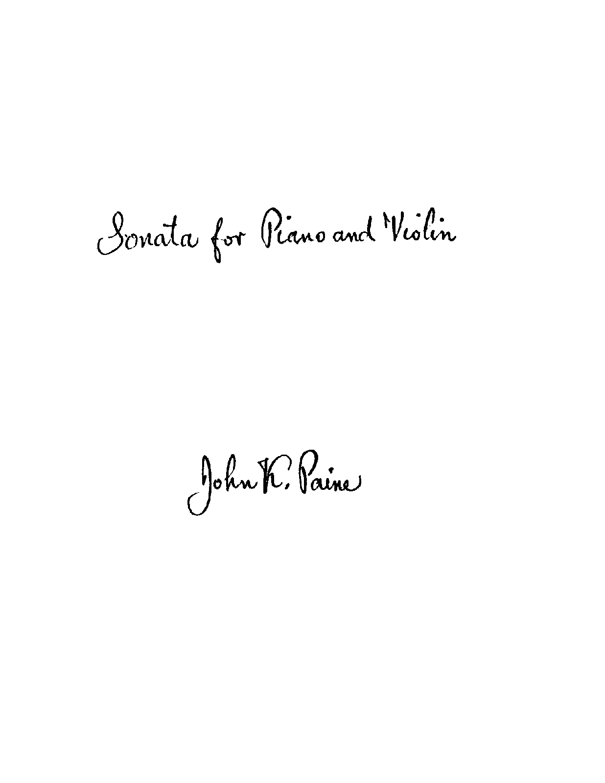 The piano score is in Paine's hand, the original of which is at Harvard. It is not in a final state, and the reader is advised to consult the AR Editions printed edition for the 1905 revision. The Autograph is presented here with small adjustments of placement of page numbers, etc. to allow it to be enlarged by 111% in letter size. No content changes were made. As for my hand-copied violin part, it is copied from the Paine piano autograph, not from a free-standing violin autograph part [which may not exist]. According to "Copyright Term and the Public Domain in the United States/1 January 2012" by Peter B. Hirtle, since the work is unpublished and the author died before 1942, the work is in pd in the U.S. at the least.