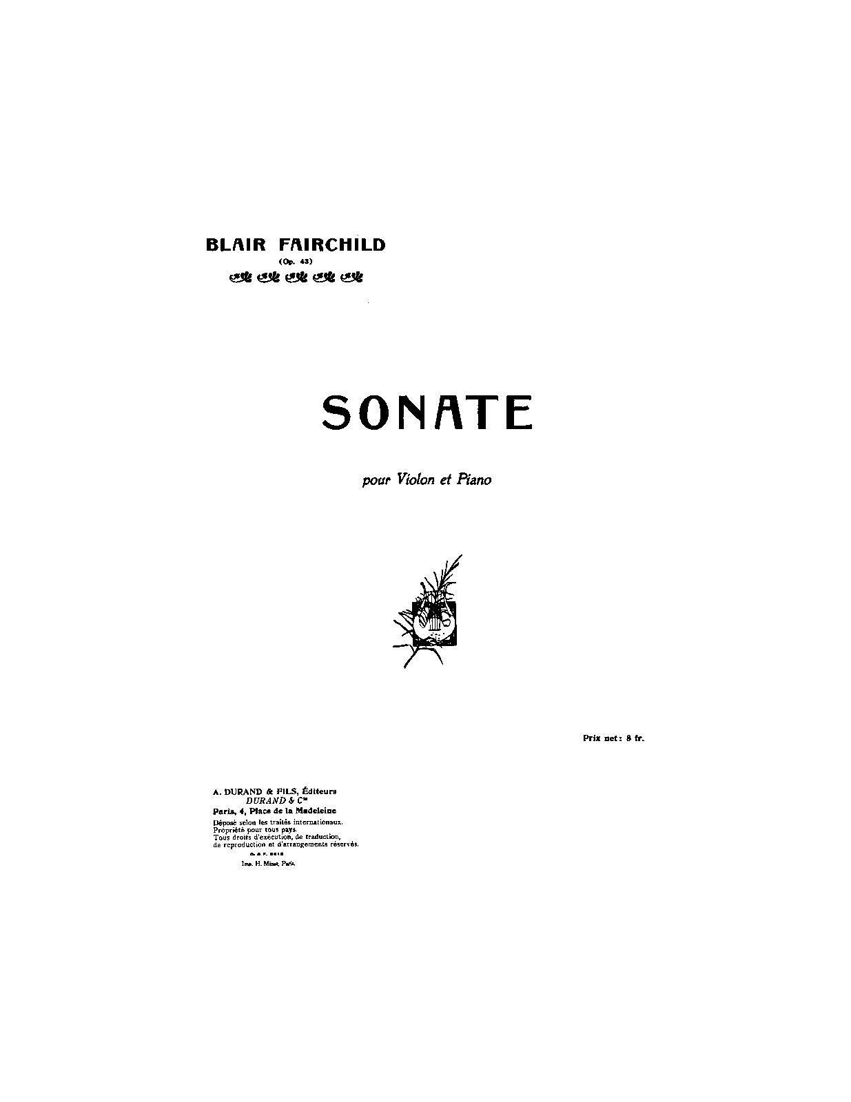 Fairchild's 2nd violin sonata (sonata no.1 in C minor, Op.16, was published in 1908 by Durdilly/Hayet.) There still may be copies of the first sonata at MIT, Harvard and U. Pennsylvania libraries.