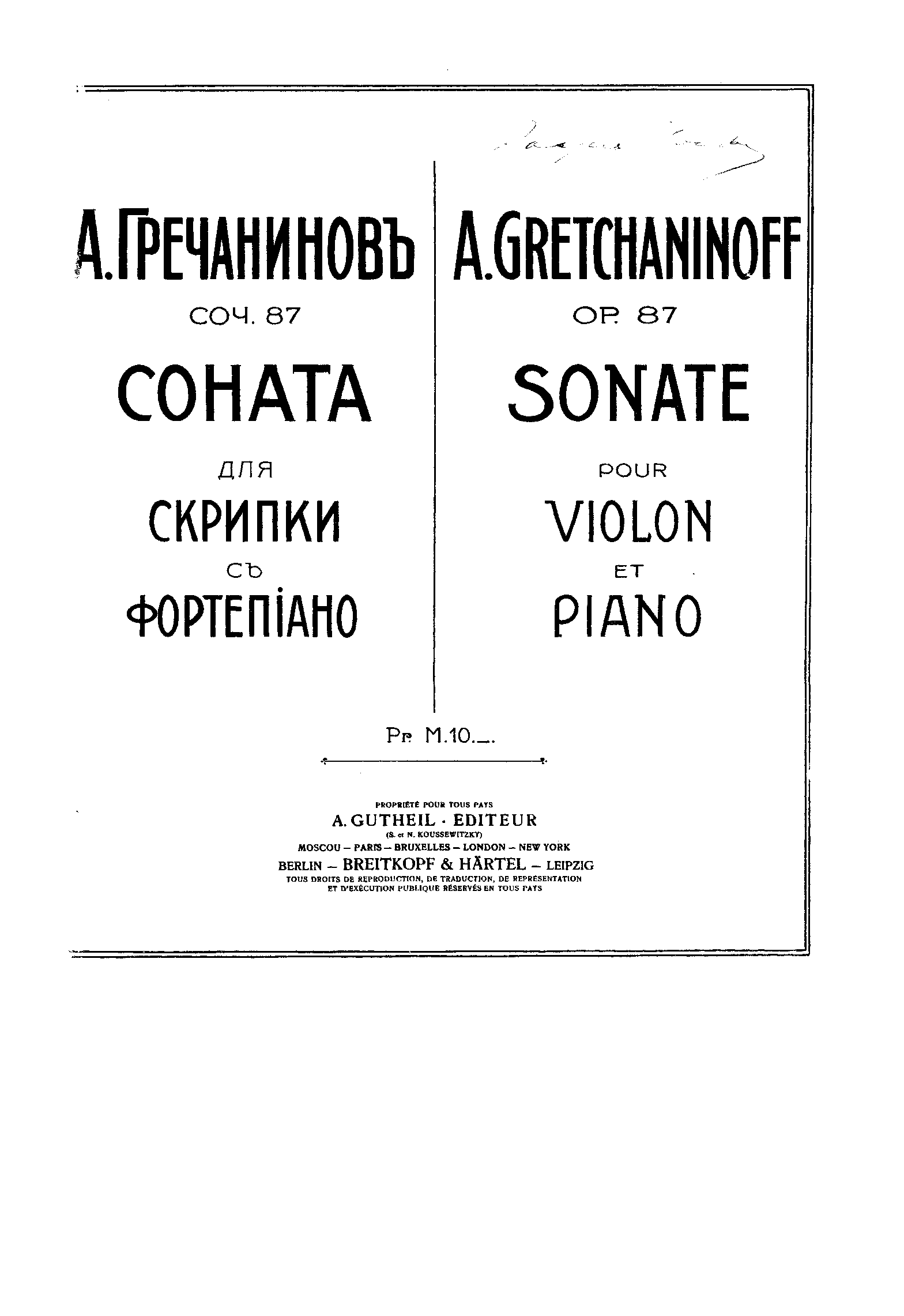 Violin Sonata, Op.87 (Grechaninov, Aleksandr)