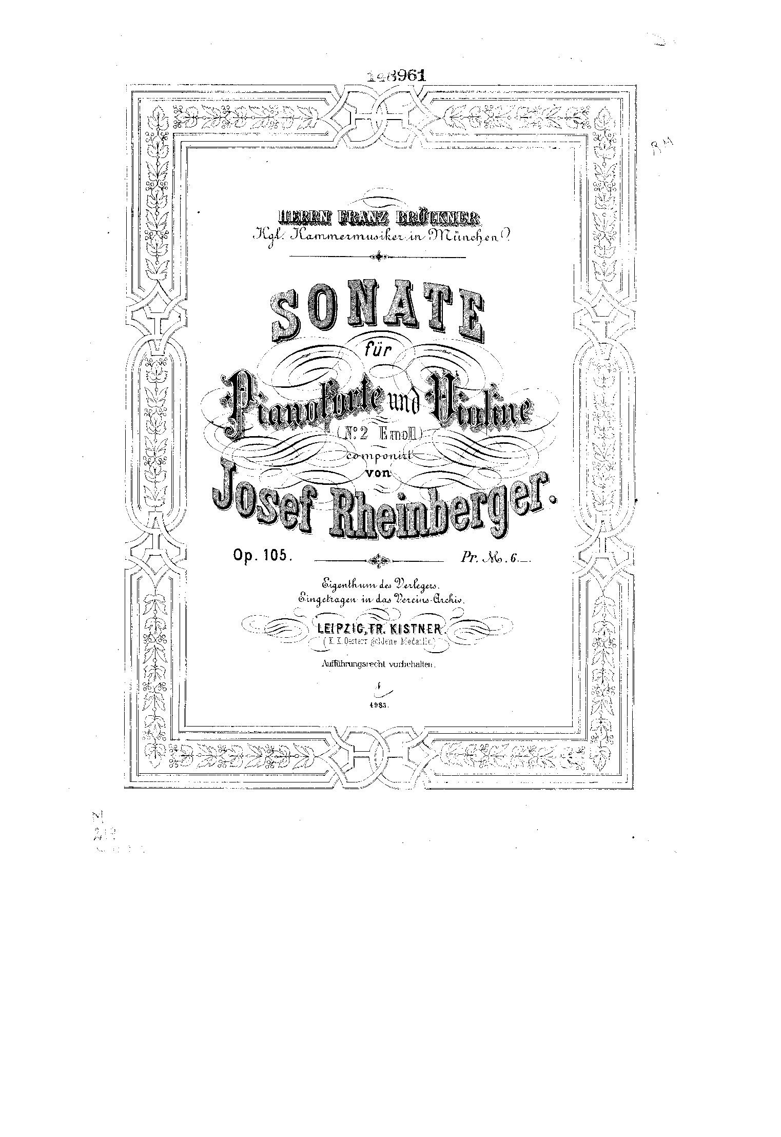 | Dedication | Franz Brückner, Royal Chamber Musician in Munich. |