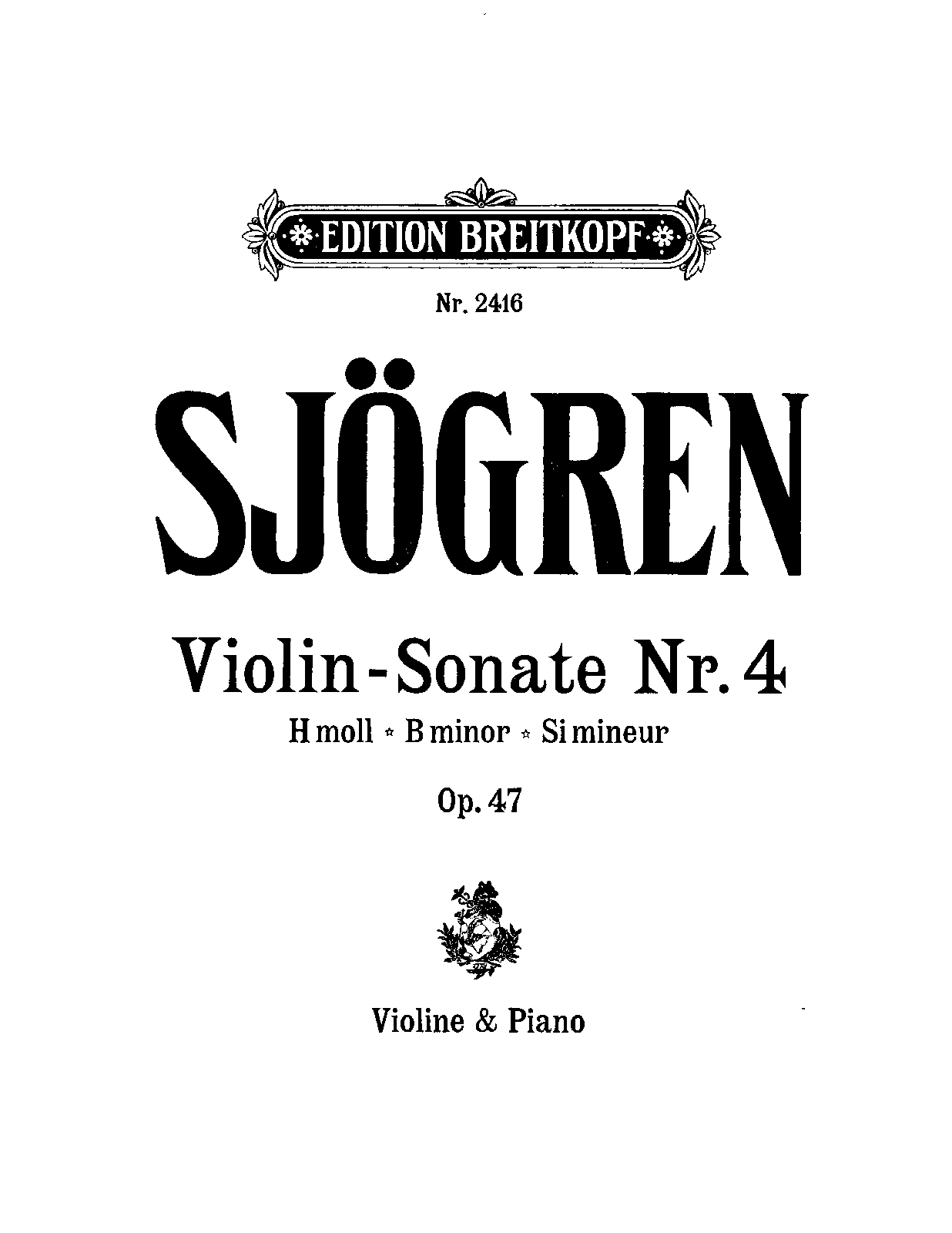 Performance mentioned in a May 1907 issue of Musical Courier ("gem of a sonata in MS by Emil Sjögren, in B minor")