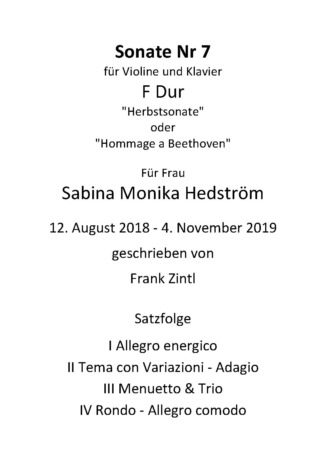This sonata is a pasticcio with strong influences from Beethoven. The author intended to write a violin sonata which corresponds to Beethoven's Violin Sonata in F major Op.24, the "Spring Sonata'. Therefore the same key and the same number of movements were chosen. Since the author's work was completed on 4th November, this sonata carries the name 'Herbstsonate' (Autumn Sonata).