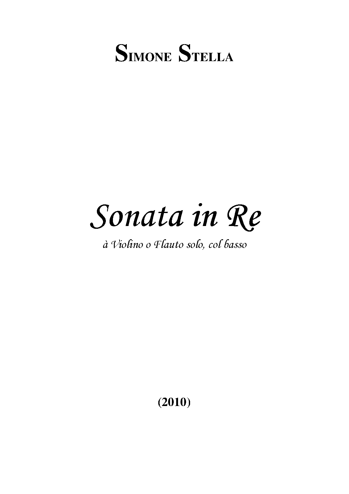| Alternative. Title | Sonata in Re à violino o flauto solo, col basso |