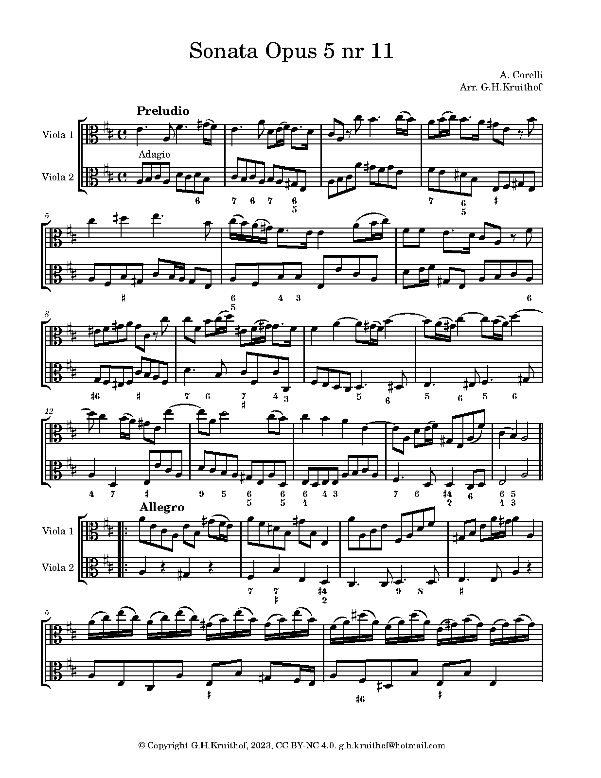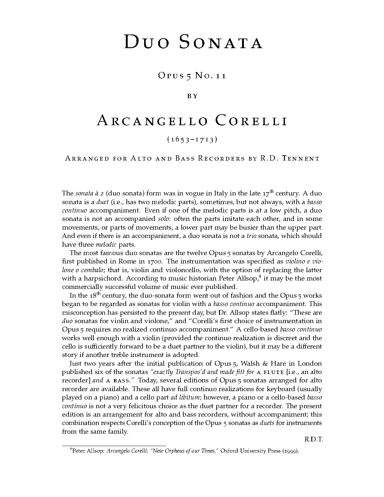First Publication. 1700 in 12 Violin Sonatas, Op.5 (No.11)