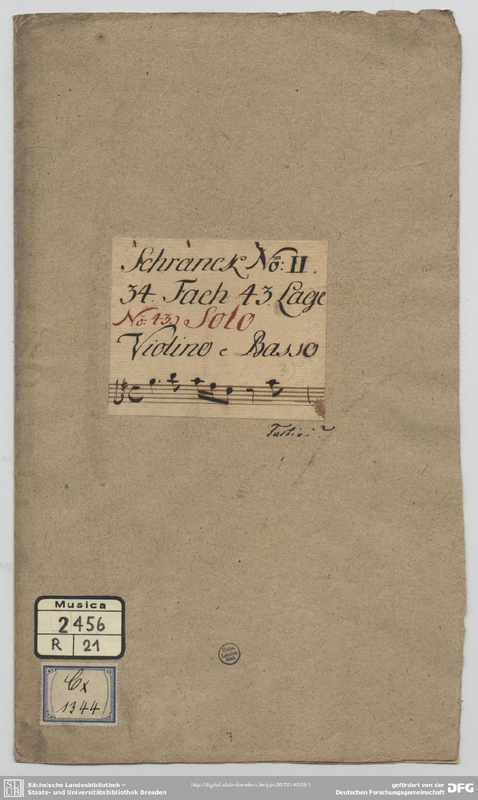| Authorship Note This work, considered as a whole Sonata, has previously been falsely attributed to Vivaldi (as RV Anh.98) and Tartini (as GT 2.G27). It is now considered a Pasticcio Sonata which was put together in Dresden. |