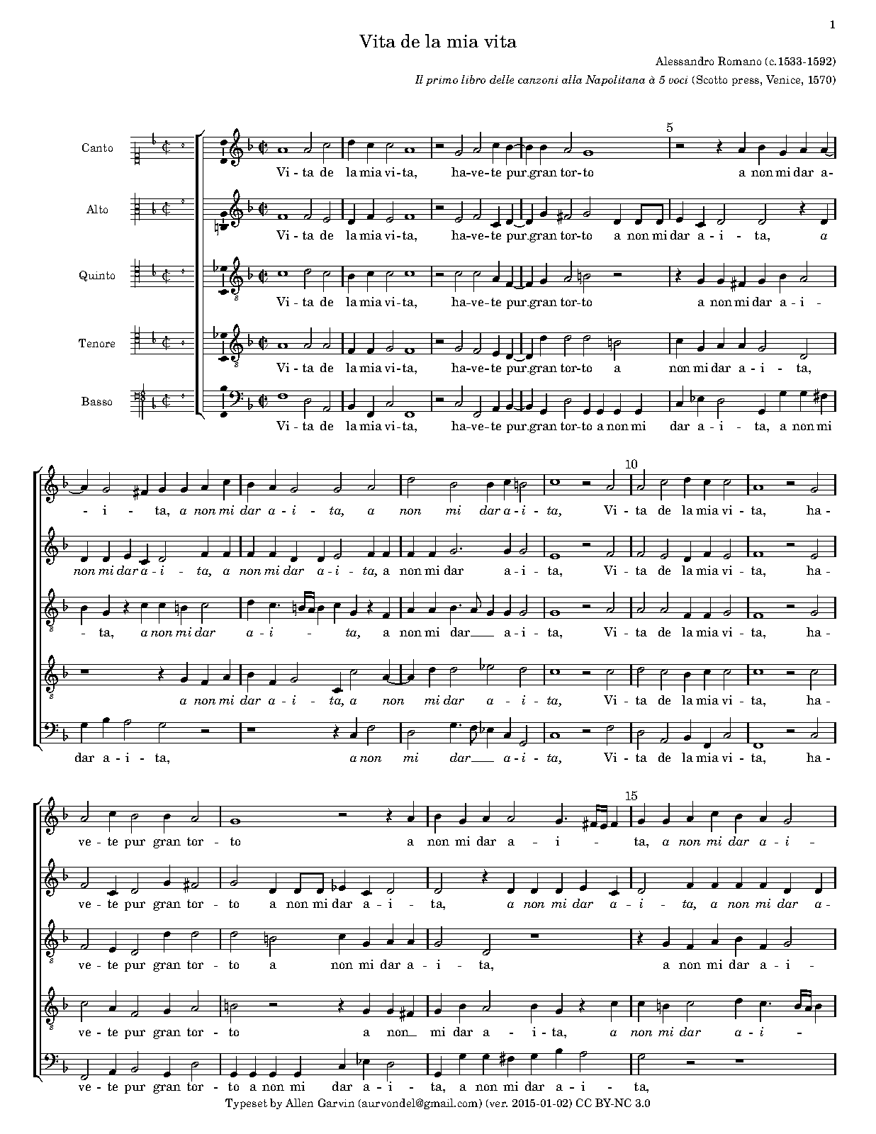 | Work Title | Vita de la mia vita |