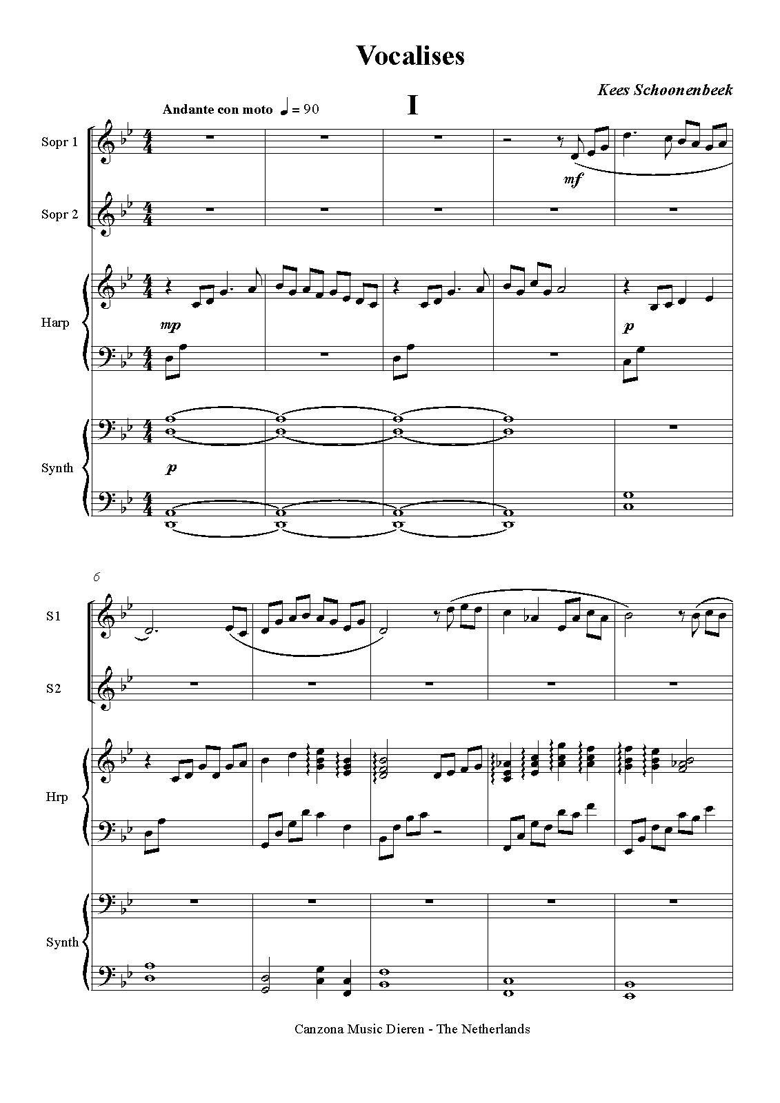 | Genre Categories | Vocalises; For 2 voices, harp, synthesizer; Scores featuring the voice; |
