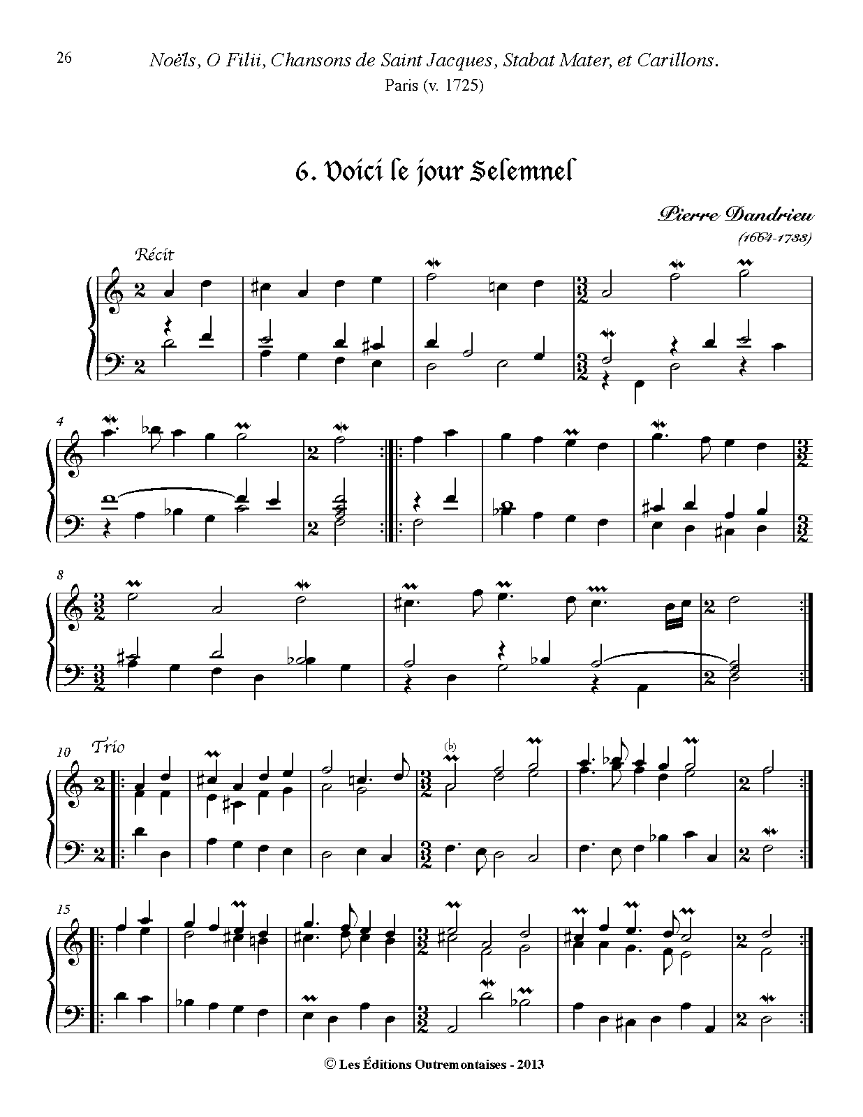 | First Publication. | 1733 in Noëls, O filii, chansons de Saint-Jacques, Stabat mater, et carillons (No.6) or before* |