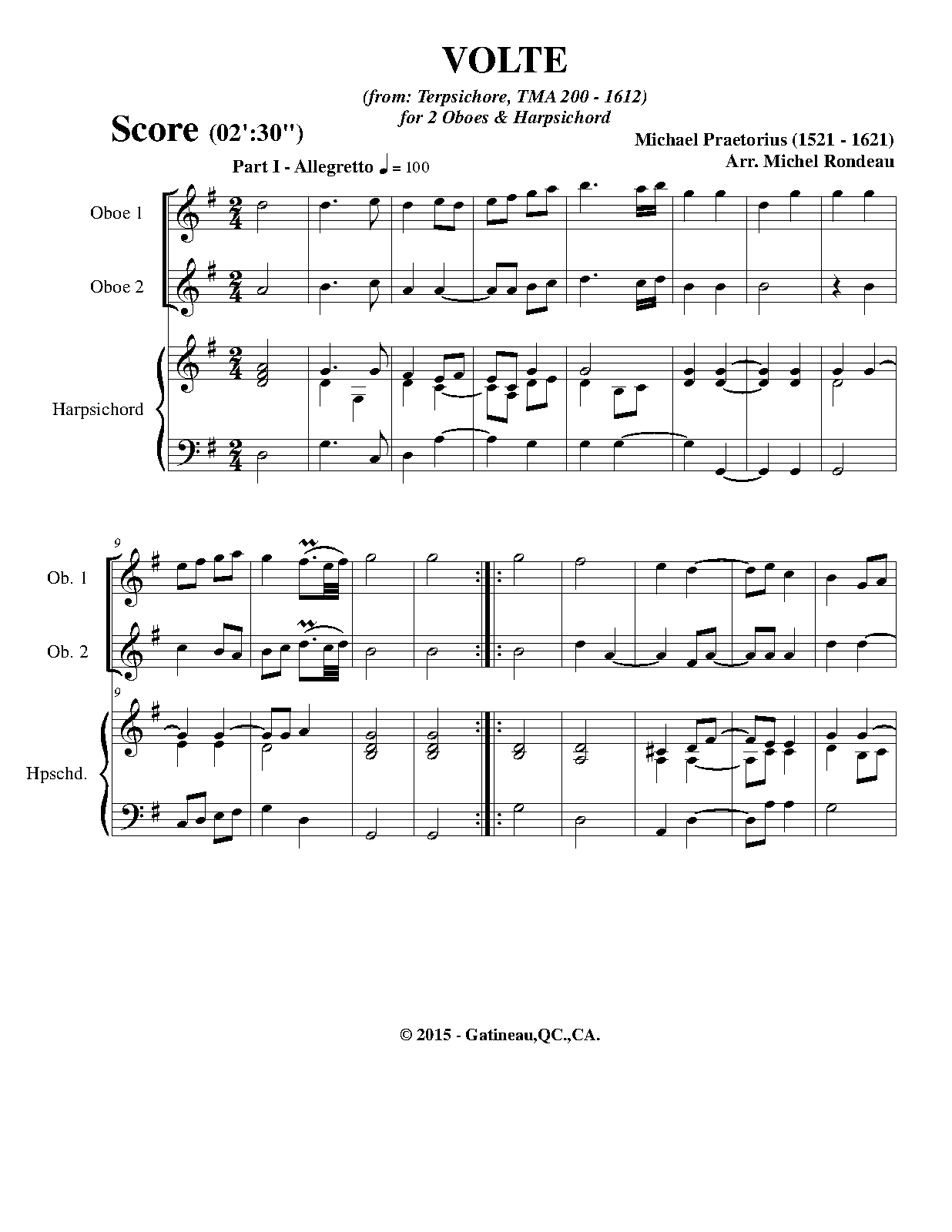 | Extra Information | These pieces were assembled and arranged by Praetorius for his 1612 collection. It is unknown how many, or if any, of the works in the collection were actually composed by Praetorius as opposed to being popular dance tunes arranged by him. The instrumentation is not specified in the original, and simply listed as "à 5". |
