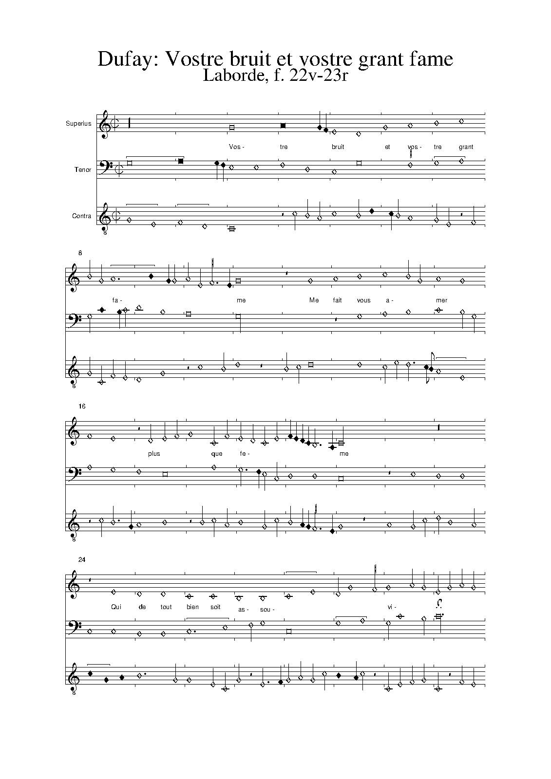 See: Motets, Vox DL 990 (Dufay, Guillaume) with Le Petit ensemble vocal de Montreal, dir. George Little, and Consort of viols, dir. Otto Joachim