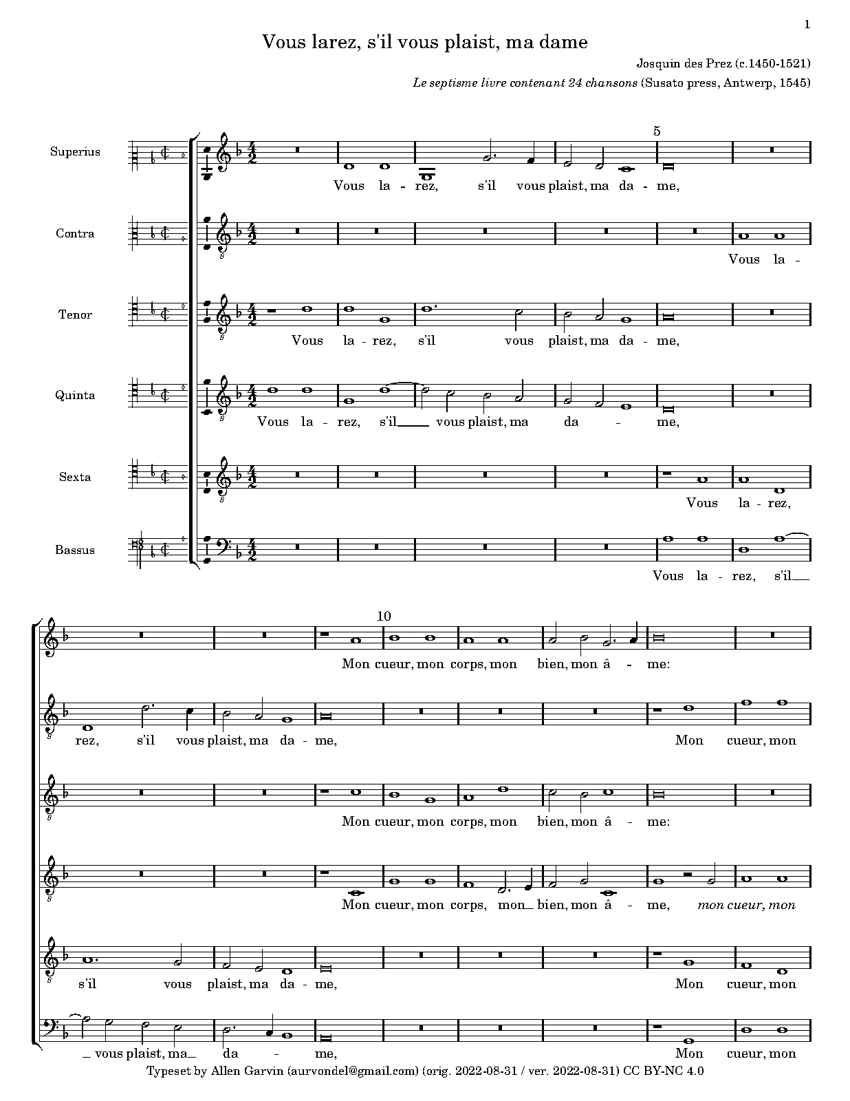 | Genre Categories | Chansons; Songs; For 6 voices; |