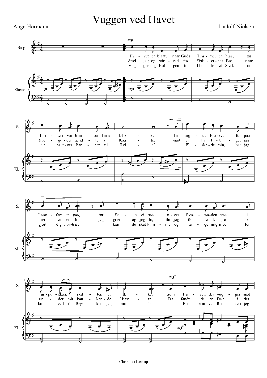 | Extra Information | We do not know much about Ludolf Nielsen's song Vuggen ved Havet (Cradle of the Sea). It's dedicated to Karen Caspersen, a Danish actress. After comparing examples of the composer's manuscripts, we suppose that the song was written sometime after 1920. |