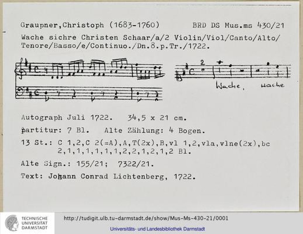 | Librettist | Johann Conrad Lichtenberg (1689-1751) |