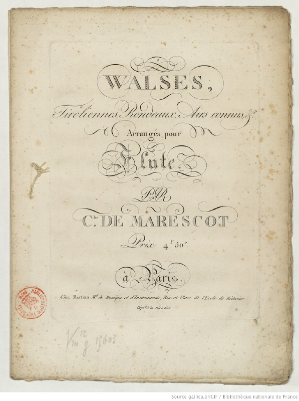 | Work Title | Walses, Tyroliennes, Rondeaux, Airs connus, arrangés pour Flûte |