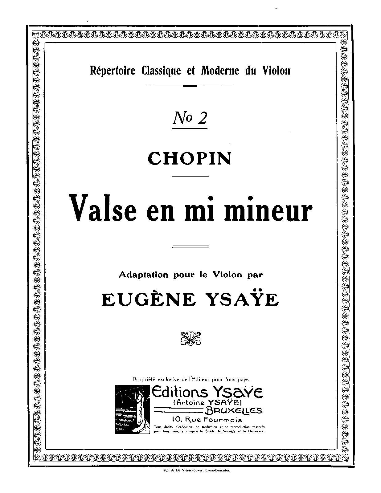 Publisher. Info. Bruxelles: Antoine Ysaÿe, 1926. Plate A.Y. 3453.