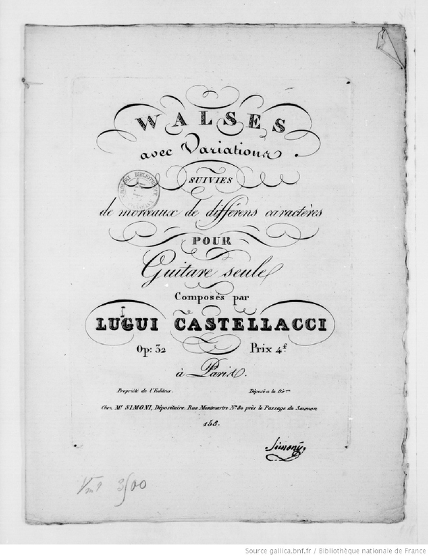 | Alternative. Title | Walses avec variations suivies de morceaux de différents caractères pour Guitare seule |
