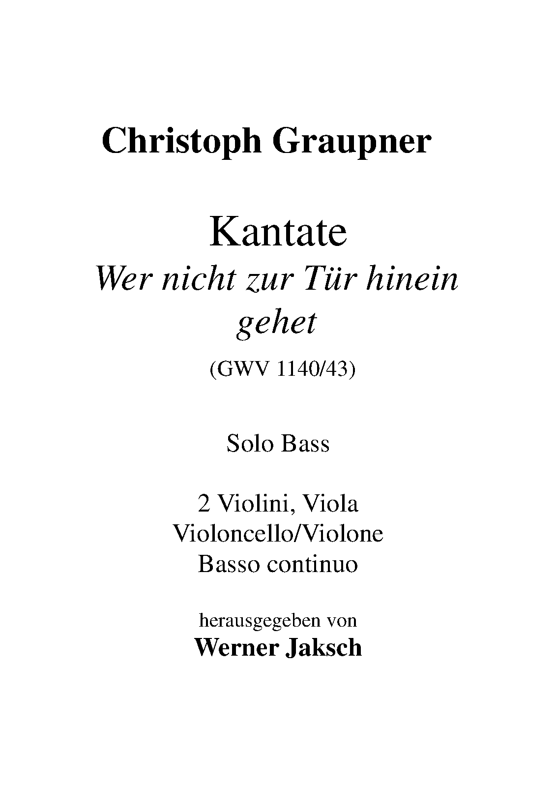 | Work Title | Wer nicht zur Tür hineingehet, GWV 1140/43 |