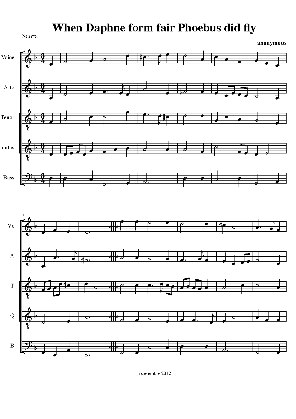 | Work Title | When Daphne from Fair Phoebus did Fly |