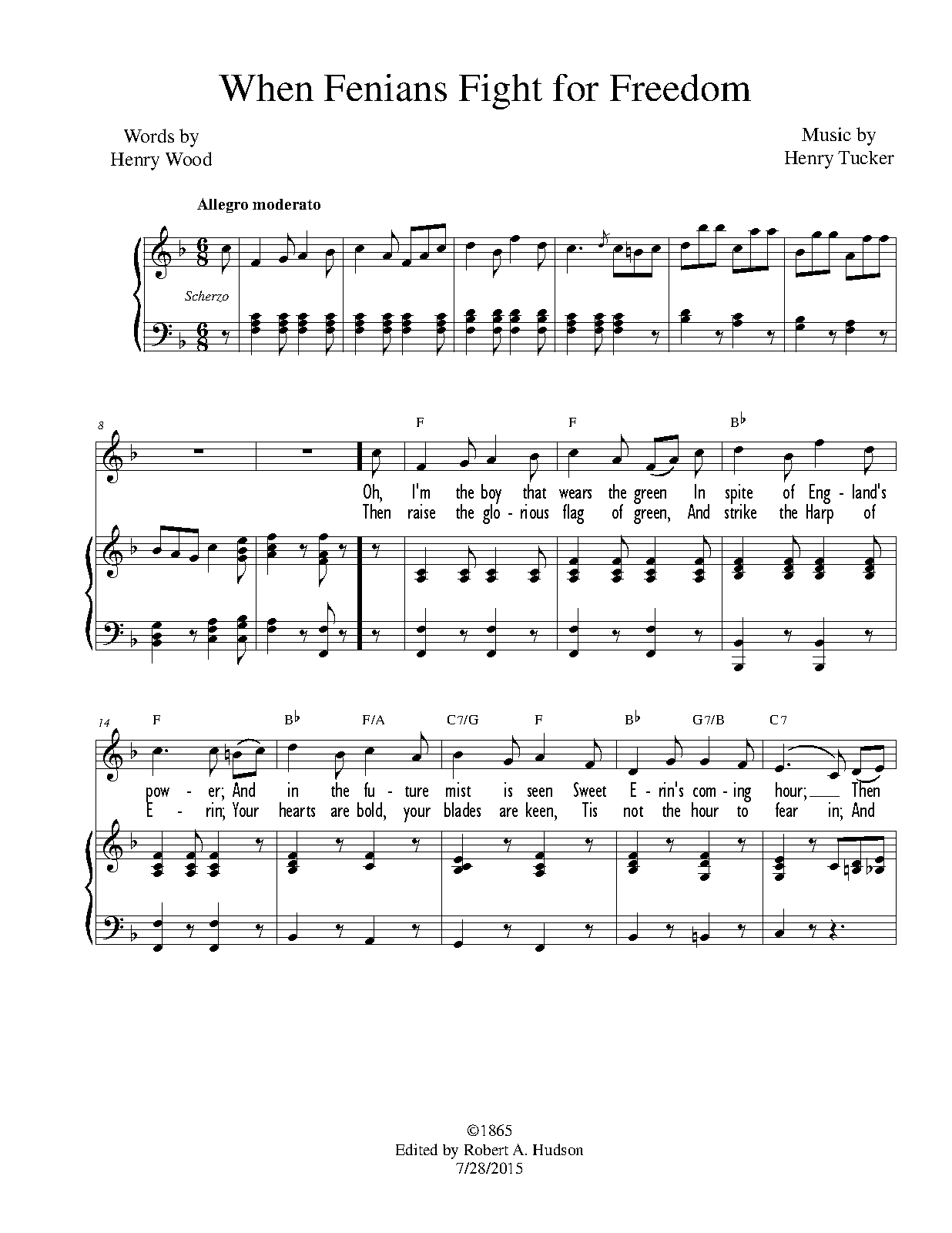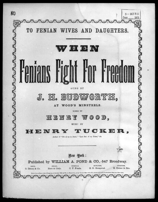 Inspired by events leading to The Fenian Rising of 1867, Tucker would reuse the music from this song for the 1868 campaign song listed above.