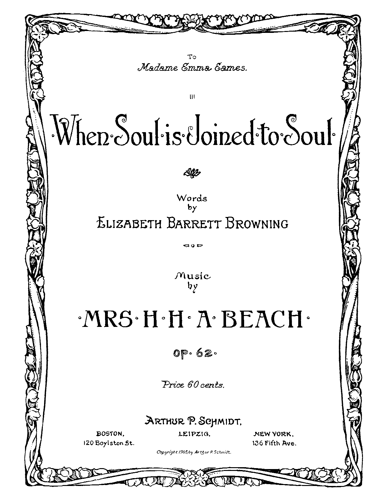 | First Publication | 1905 – Boston: Arthur P. Schmidt |