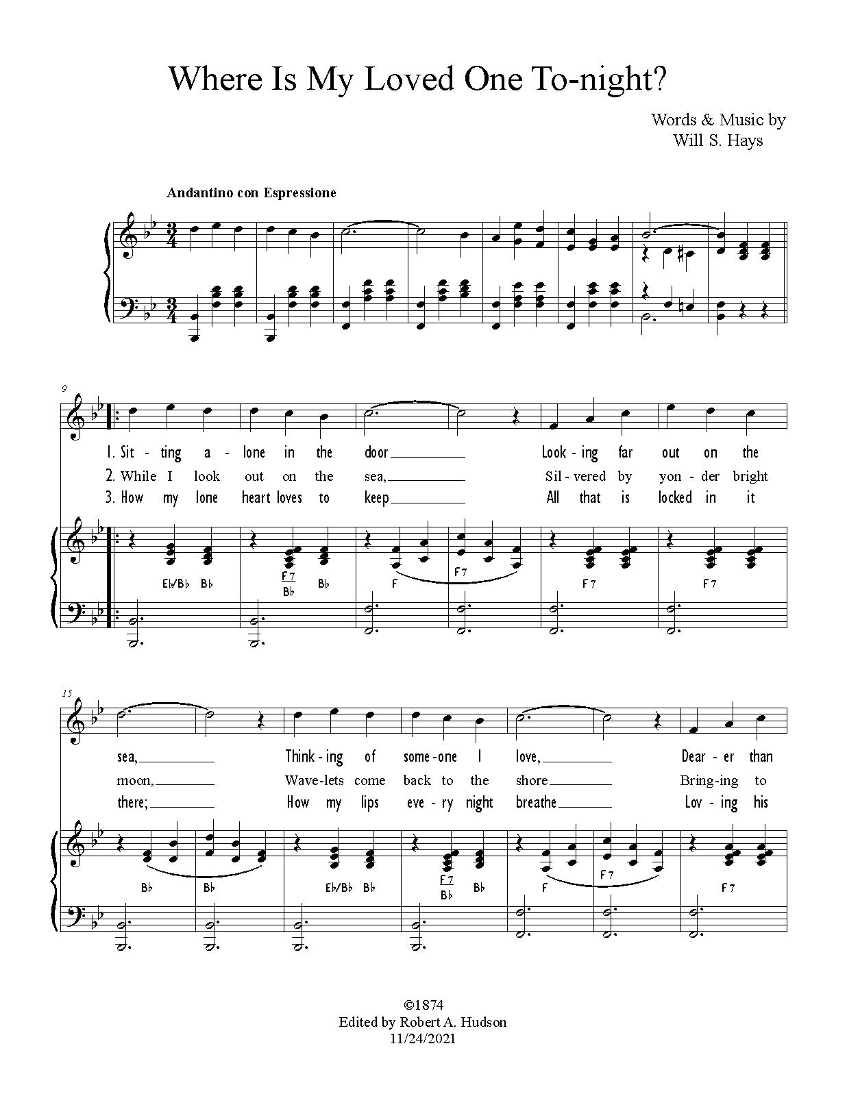 | Work Title | Where Is My Loved One To-night? |