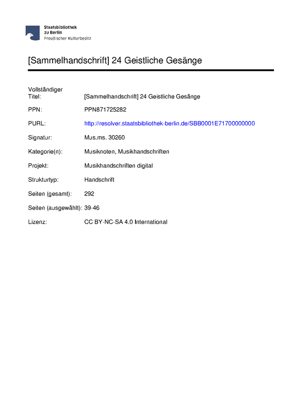 | Work Title | Wie der Hirsch schreiet nach frischem Wasser |