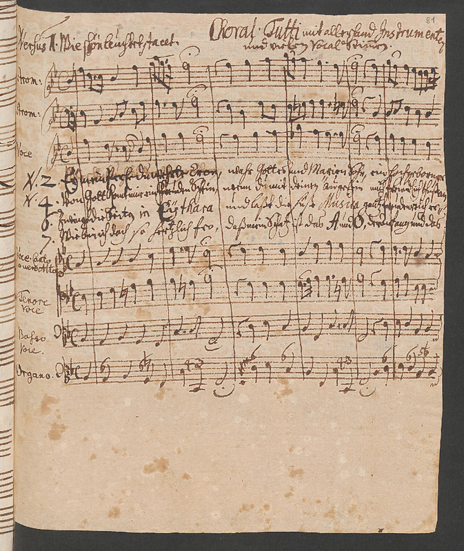 | Instrumentation | Voices: 2 basses, mixed chorus (SSTB) Instruments: 2 violins, continuo (organ) |
