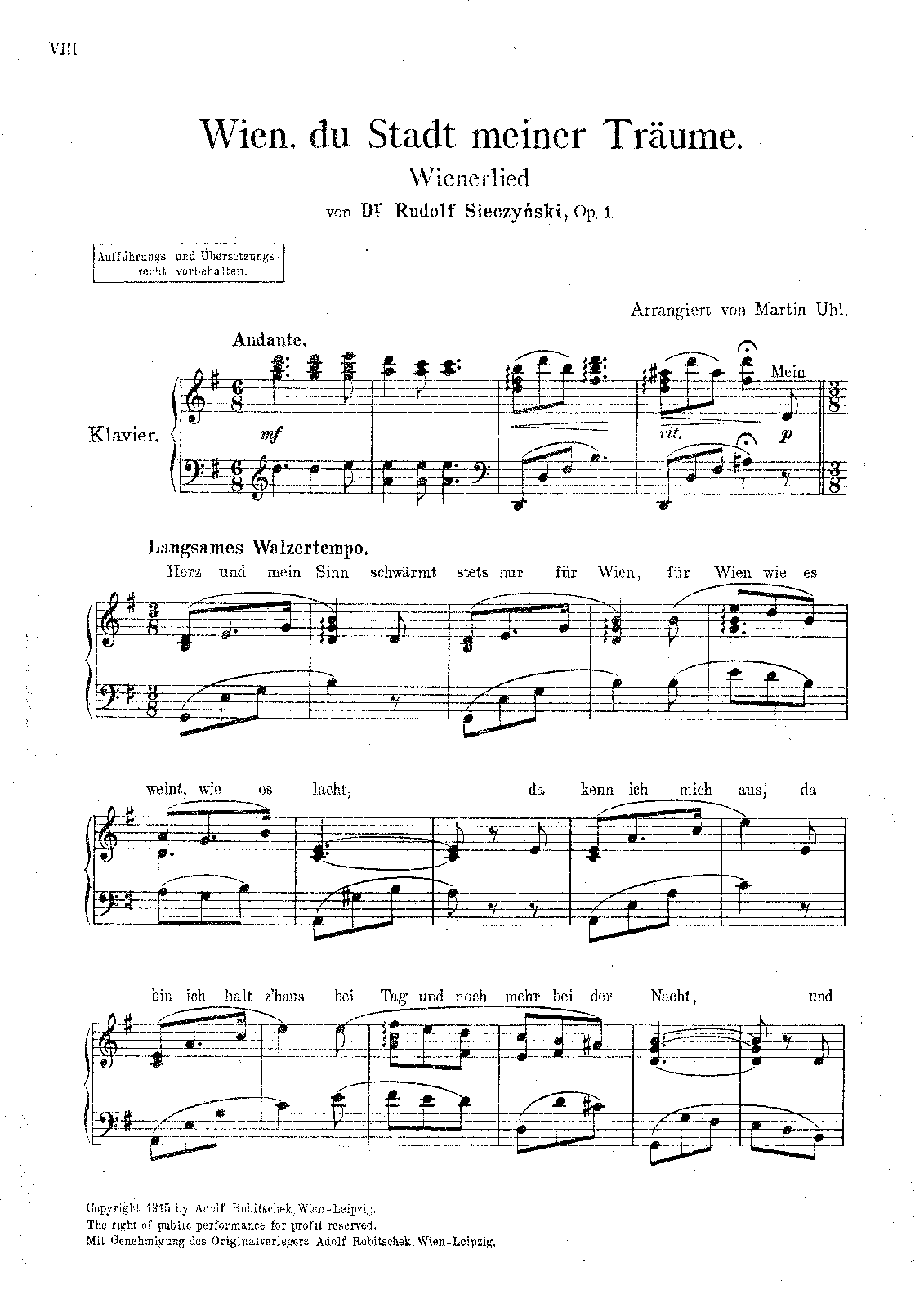 Wien, du Stadt meiner Träume, Op.1 (Sieczynski, Rudolf)