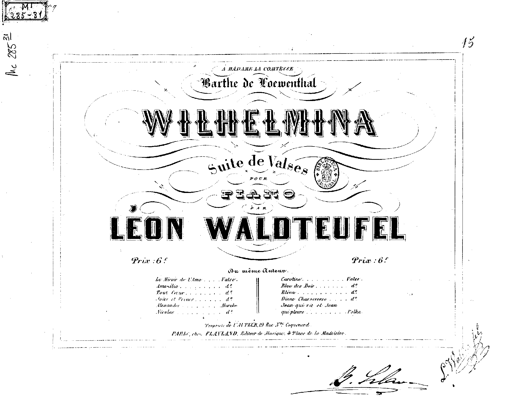 | Dedication | à Madame la Comtesse Barthe de Loeventhal |