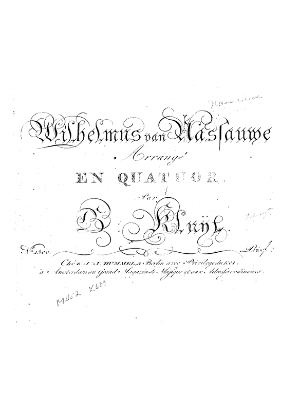 | Alternative. Title | Wilhelmus van Nassauwe arrangé en Quatuor |