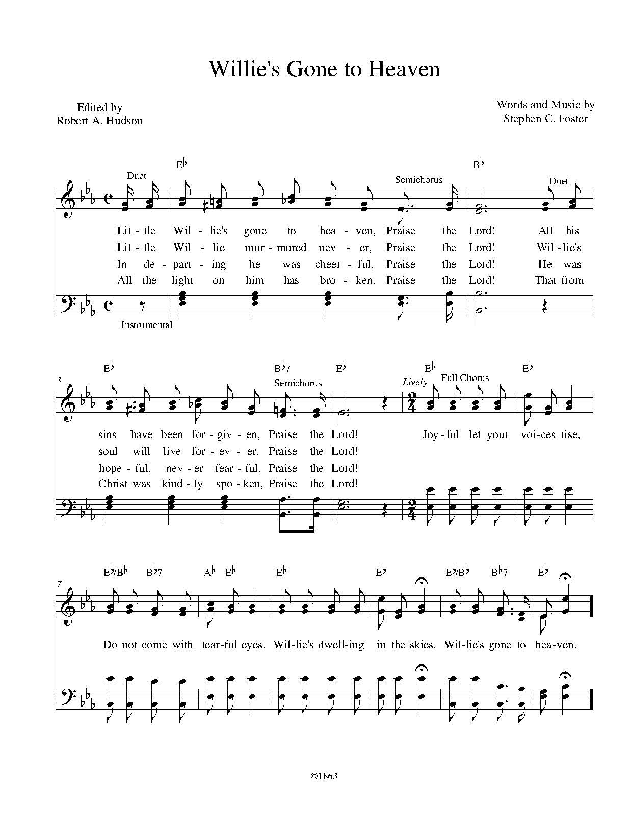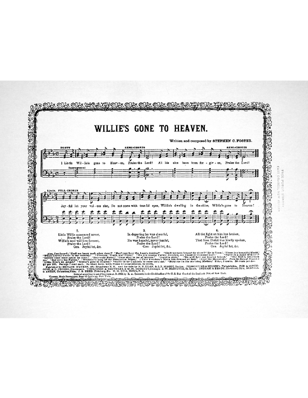 Text Incipit Little Willie's gone to Heaven, Praise the Lord!